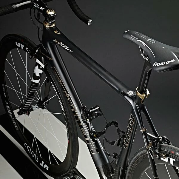 - Die Matrixoberflächenstruktur aus 3K-Carbonfasern – Fasern der höchsten Carbonqualität – kombiniert mit dem steiferen UD-Komposit, verleiht dem Rahmen auch bei hohen Geschwindigkeiten eine unglaubliche Spurtreue.