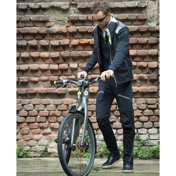 Wenn die Reißverschlüsse an den Knöcheln komplett geöffnet werden, haben Sie eine Hose mit nahezu gerade geschnittenem Bein. Dank des knitterfreien Materials machen sie darin sowohl mit als auch ohne Rad eine gute Figur.
