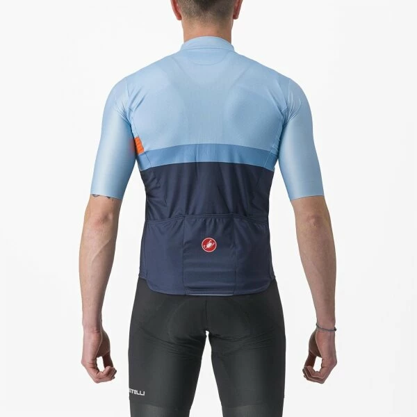Klassisches Design, aufbauend auf der Konstruktion des Squadra-Trikots von Castelli, das den klassischen Schnitt mit technischen Details wie Drop-Pocket-Design und Stretch-Ärmeln für hervorragende Passform und Komfort überarbeitet.