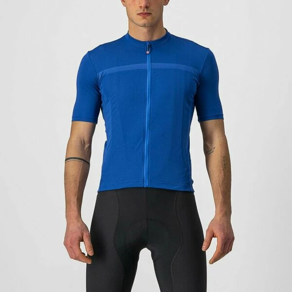 Für die Tage, an denen Sie nicht gegen die Uhr fahren, sondern einfach ein paar Stunden im Sattel sitzen. Sie wollen es komfortabel haben und gut aussehen. Wir haben in dieses Trikot alles außer Speed eingebaut. Es verwendet ein brandneues Material, wodurch wir dem ansonsten einfarbigen Trikot mit einem Überfärbeverfahren an den Schultern und Seiten eine größere Farbtiefe verleihen können. Da das Trikot für lange Etappen gedacht ist, geben wir ihm ein Reißverschlusstäschchen mit auf den Weg, um Ihre Wertsachen sicher aufzubewahren. Die Passform ist körperbetont, um den Tragekomfort zu erhöhen, aber nicht so hauteng wie bei unseren Race-Trikots.