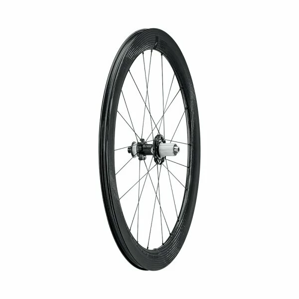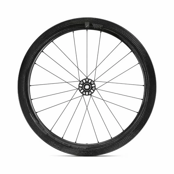 Die wahre Herausforderung bestand darin Fulcrum Speed 55 DB nochmals zu verbessern, mit denen sich die Speed CMPTZN DB-Laufräder einige technische Details teilen, wie zum Beispiel die Vollcarbon-Felge mit Twill-Finish und das 2: 1-Speichenmuster.