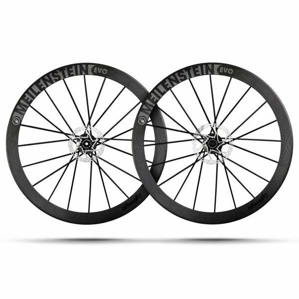 Die Gründe dafür liegen vor allem an der einzigartigen Konzipierung der MEILENSTEIN DISC Reihe. Die einseitig auftretenden Bremskräfte wurden analysiert und als Ergebnis die patentgeschützte Pentagon-Nabe entwickelt und eingesetzt. Gemeinsam mit den fest einlaminierten Voll-Carbon-Speichen, von der jede rund 1,8 Tonnen Zugkraft aufnehmen kann, bildet die Pentagon-Nabe das technologische Grundkonzept für ein sicheres und haltbares Laufrad, das seinesgleichen sucht. Die MEILENSTEIN DISC Reihe wurde überarbeitet und um Tubeless erweitert – so entstand die MEILENSTEIN EVO Reihe.
