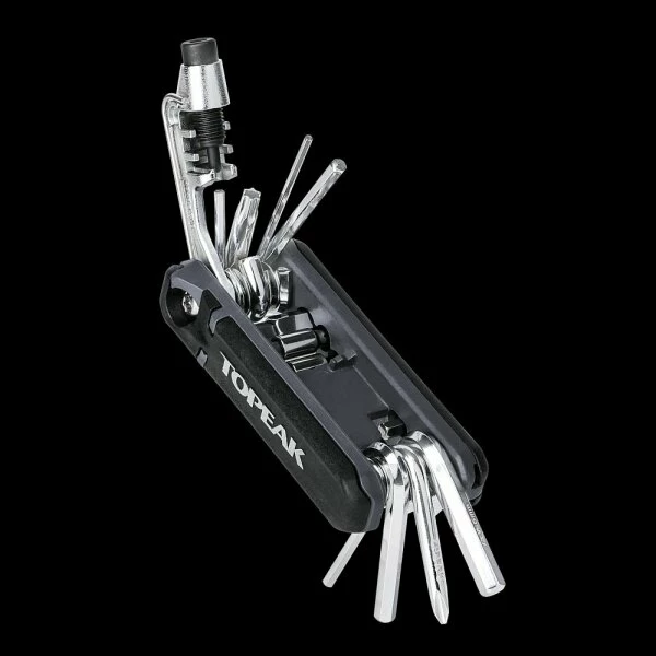 Inklusive einem Werkzeug zum Festziehen des Multitools (T25 Torx Bit) und einem Presta -Ventilwerkzeug zum Anziehen oder Entfernen von zweiteiligen Presta -Ventileinsätzen.