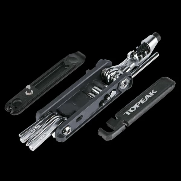 Der Hexus X ist ein 21-Funktionen-Multitool im neuen Design, um T15, T25, 8 mm Hex-Werkzeugbits und seitlich angebrachte Reifenhebel sicher zu verstauen.