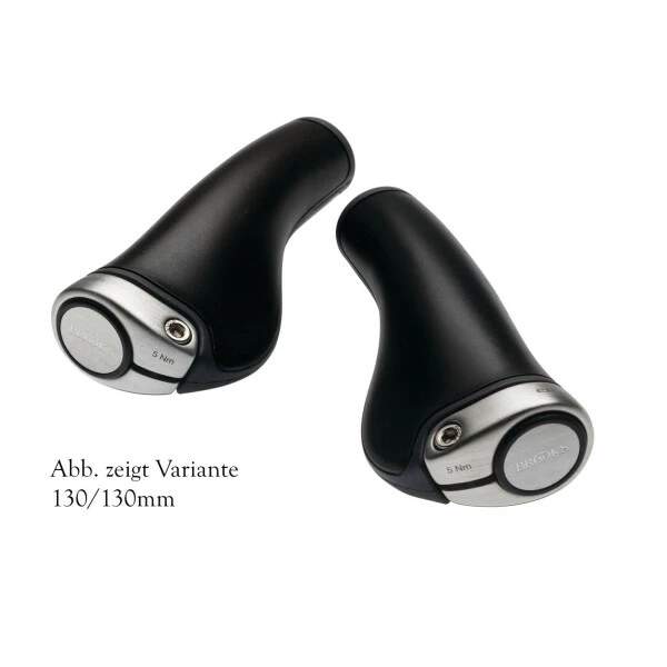 Ergonomische Lenkergriffe von Brooks für Drehgriffschaltungen. Die Griffe sind mit braunem oder schwarzem Bezug erhältlich und stützen die Hand durch die ergonomische Flügelform angenehm ab.